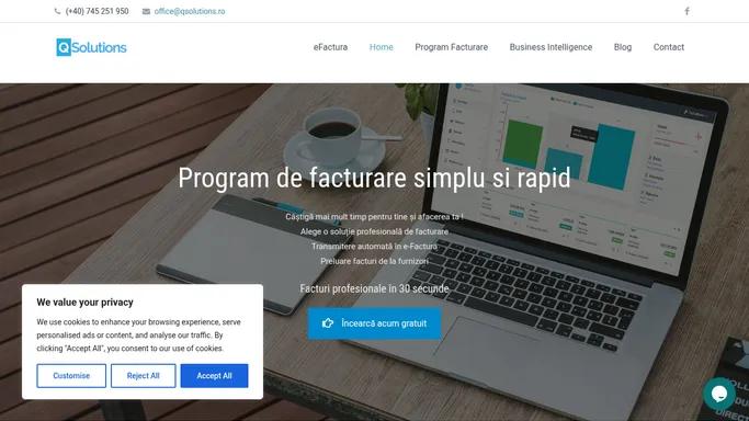 Telefon - Email - Website www.qsolutions.ro Pagina de contact Contact QsolutionsRetele sociale Grafic evoluție companie